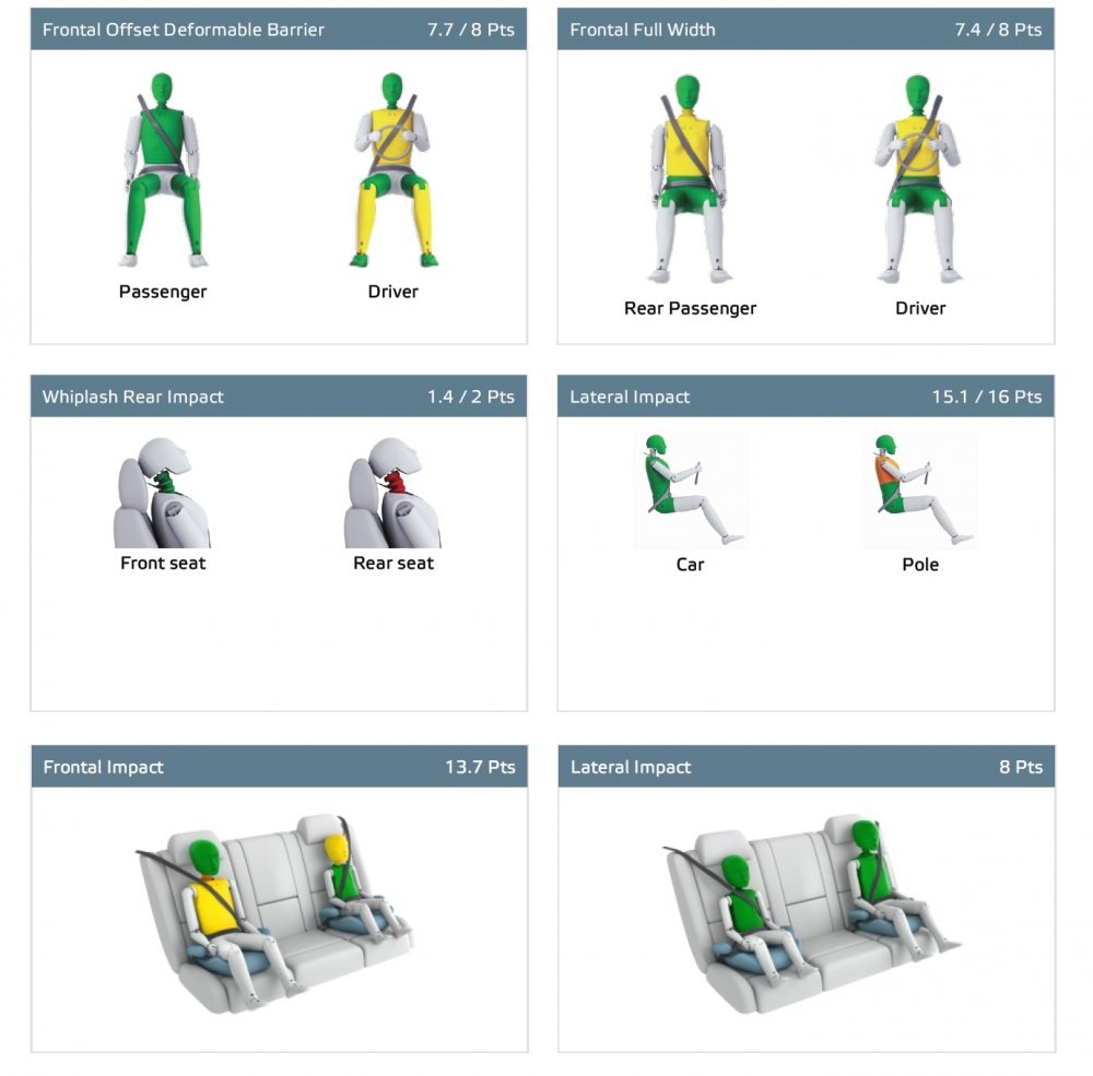 Но если «гелику» всё же можно дать моральную скидку за древность конструкции кузова, то вполне современная Honda CR-V пятого поколения снисхождения не заслуживает. В краш-тестах японский кроссовер выступил гораздо лучше немецкого внедорожника, но при боковом ударе о столб на груди манекена зафиксирован пограничный оранжевый уровень нагрузок, означающий риск получения переломов ребёр и ушибов внутренних органов. Также оранжевый уровень нагрузок зафиксирован на шее «10-летнего» манекена при фронтальном ударе. Геометрия задних подголовников CR-V и вовсе оценена на «двойку» (красный уровень опасности).