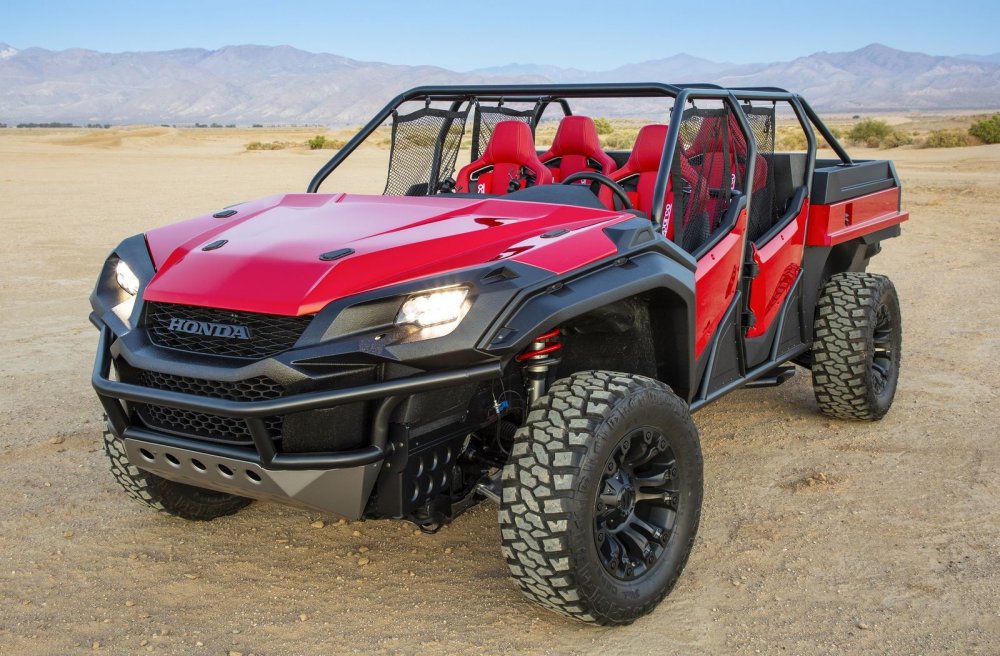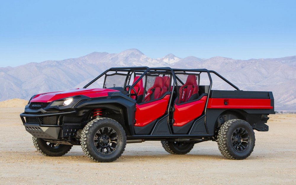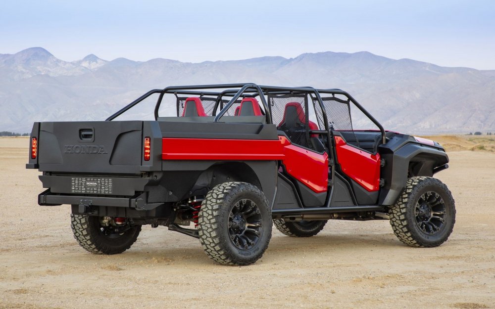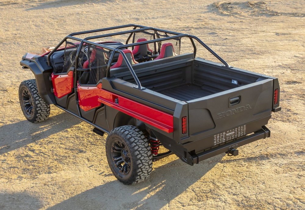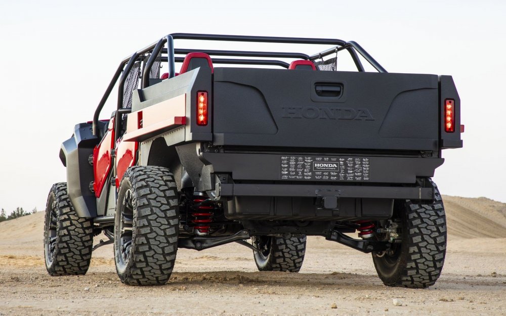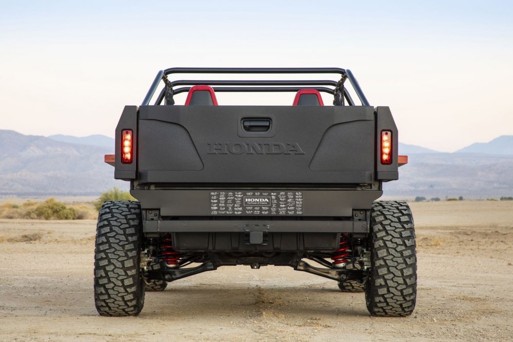 Фирма Honda привезла на выставку SEMA пикап Ridgeline, стилизованный под мотовездеход Pioneer 1000. Ради нового образа, получившего название Honda Rugged Open Air Vehicle, несущий кузов исходной модели пришлось изрядно покромсать.