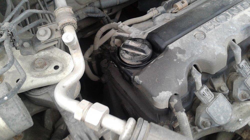 Во-первых, если его доливают в нормальном сервисе, то стараются не лить мимо и уж тем более не оставляют его потёки вокруг горловины. Либо масло меняли в каком-то гараже, либо — что более вероятно — его частенько доливал владелец машины. Оно и не удивительно: оно проступает даже через прокладку клапанной крышки, чего тут быть вообще не должно.