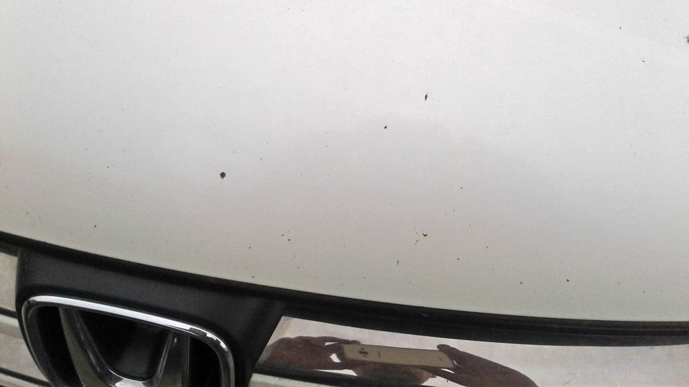 Забавная картинка. Родная краска осталась только на крыше и переднем правом крыле. Да, что хорошо, что стойки тоже в родной краске: хотя бы не было ДТП с тотальными последствиями.