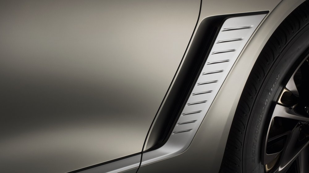 Среди интересных решений можно отметить узкие светодиодные фары с потрясающей графикой в стиле клавиш пианино, которые могут светиться независимо друг от друга, алюминиевую вставку на переднем бампере, делающую автомобиль визуально шире, стойки лобового стекла чёрного цвета, создающие эффект невесомости крыши, по-новому интерпретированную форму традиционных для автомобилей марки воздуховодных отверстий в районе переднего крыла, решётку радиатора с "глубоким" рисунком, а также 24-дюймовые колёсные диски в двухцветном исполнении.