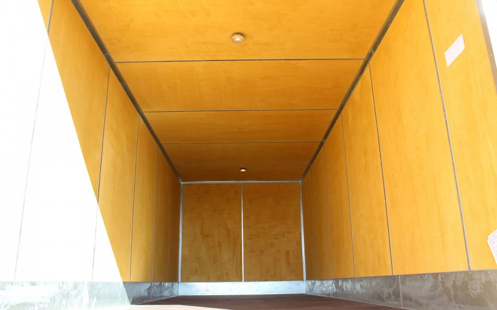 Наружная обшивка фургона выполнена из плакированного металла, настил пола - из шпунтованной доски, покрытой фанерой с противоскользящим покрытием, внутренняя обшивка — из влагостойкой фанеры.
