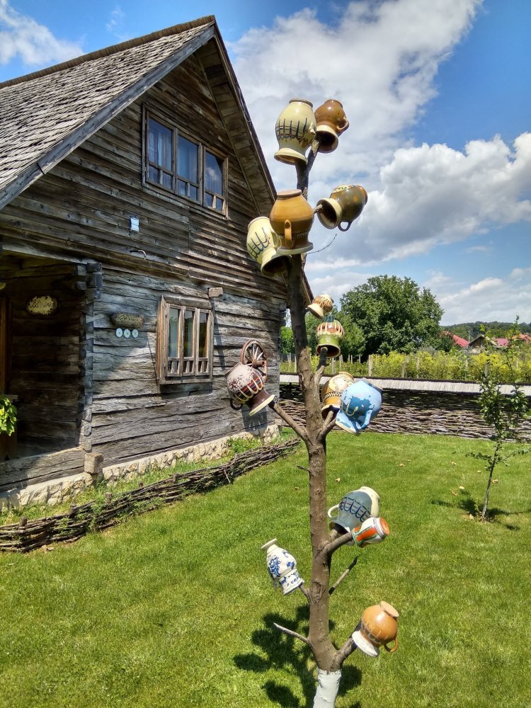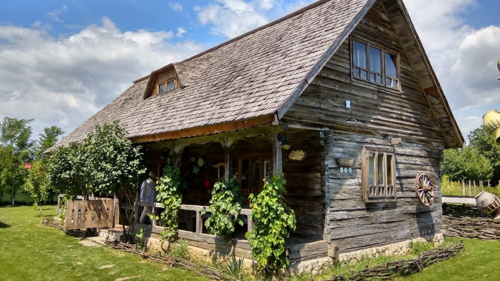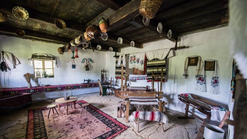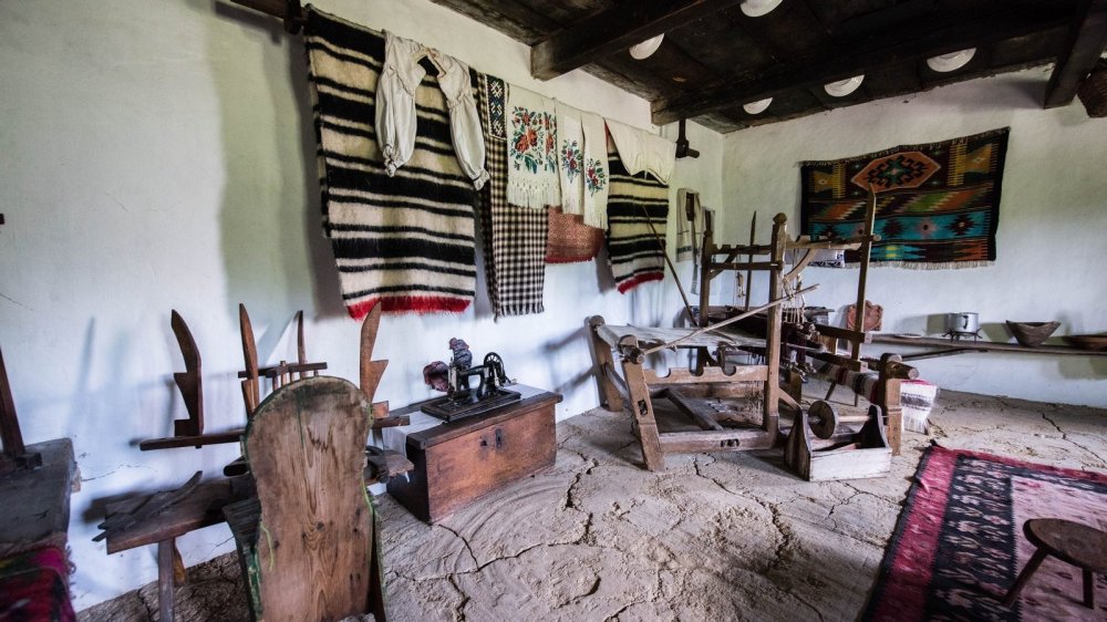 Была у нас и возможность познакомиться местными обычаями поближе: туристический комплекс Gradina Vlahiia (что в переводе означает «валашский сад»), где мы остановились на обед, включает в себя не только ресторан национальной кухни, фруктовые сады, конюшни с лошадками, скотный двор со всяким парнокопытным поголовьем, птичник, пруд с наглыми и жадными карпами и огромными, а оттого и не менее наглыми лягушками. Стоят там несколько вывезенных из деревень старинных домов под четырехскатными крышами из дранки, с опоясывающими дома верандами, с хитрыми щеколдами, которые можно открыть только специальной палочкой определенной длины. Возраст домов — от ста до двухсот лет. В домах — музей крестьянского быта: ткацкие станки, прялки, чесалки для льна, конопли и шерсти, немудреная керамика с традиционными узорами. И земляные полы. Вот, наверное, блох там было… В гостевых домиках для любителей набирающего обороты этнографического туризма полы, естественно, нормальные, деревянные.