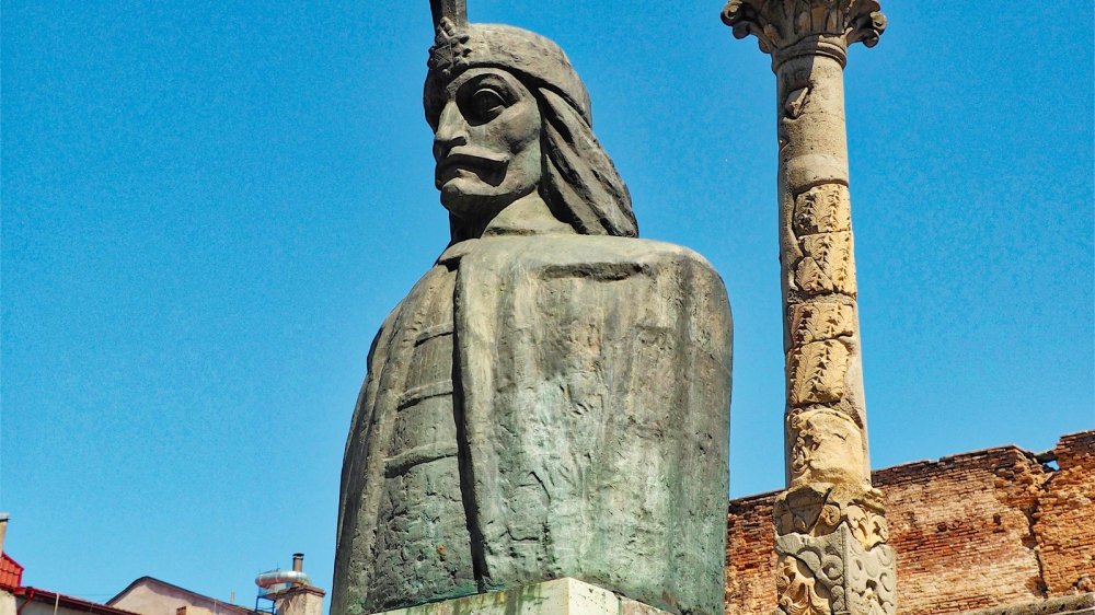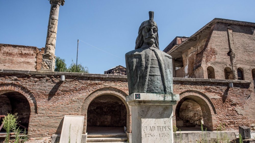 Наше знакомство с Румынией началось с Бухареста. Бухарест — не самый старый город Европы: начало ему положила крепость, заложенная в середине XV века воеводой Владом III Цепешем для защиты от турок-осман. Да-да, тем самым господарем Владом, который носил помимо прозвища «Цепеш» (то есть «Колосажатель») и второе — Дракула. Только вот с придуманным Брэмом Стокером графом Дракулой этот персонаж не имеет практически ничего общего. Увы, совсем старых строений в Бухаресте сохранилось довольно мало, и многие из них пребывают в плачевном состоянии. Вот и «крепость Цепеша», княжеский двор Куртя-Веке, предстает в виде развалин умеренной живописности. Но бюст господаря Дракулы производит изрядное впечатление…