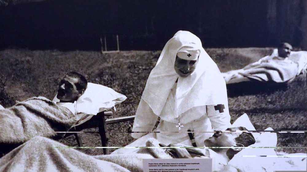 Мария окунулась в дела военные со всей страстью: ездила на фронт, в белом платье сестры милосердия встречала на ясском вокзале эшелоны с ранеными и больными тифом солдатами. Ее стали называть «матерью раненых», «солдатской королевой» — почти все время Мария проводила в военных госпиталях, где самоотверженно ухаживала за ранеными. В итоге державы Тройственного союза были повержены, и во время победного парада королева Мария в полковничьей форме прошла под Триумфальной аркой в Париже во главе эскадрона румынских гусар.