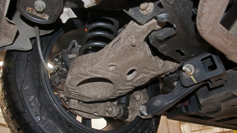 А вот ступичные подшипники придётся менять в сборе со ступицами. Ступица стоит 10 445, новая гайка — 375 рублей, сам подшипник — 743 рубля. Ну и, конечно же, сами рычаги в случае чего тоже меняют в сборе (рычаги стоят по 15 тысяч, замена верхних с нашим двухлитровым двигателем — 9 350, а нижних — 7 150 рублей).