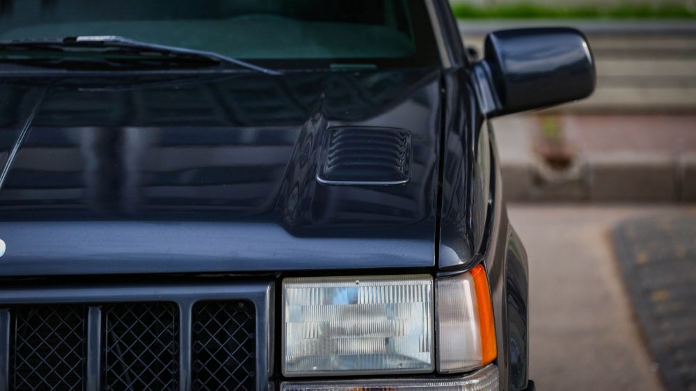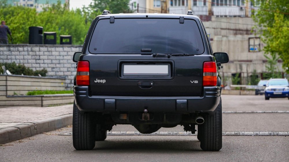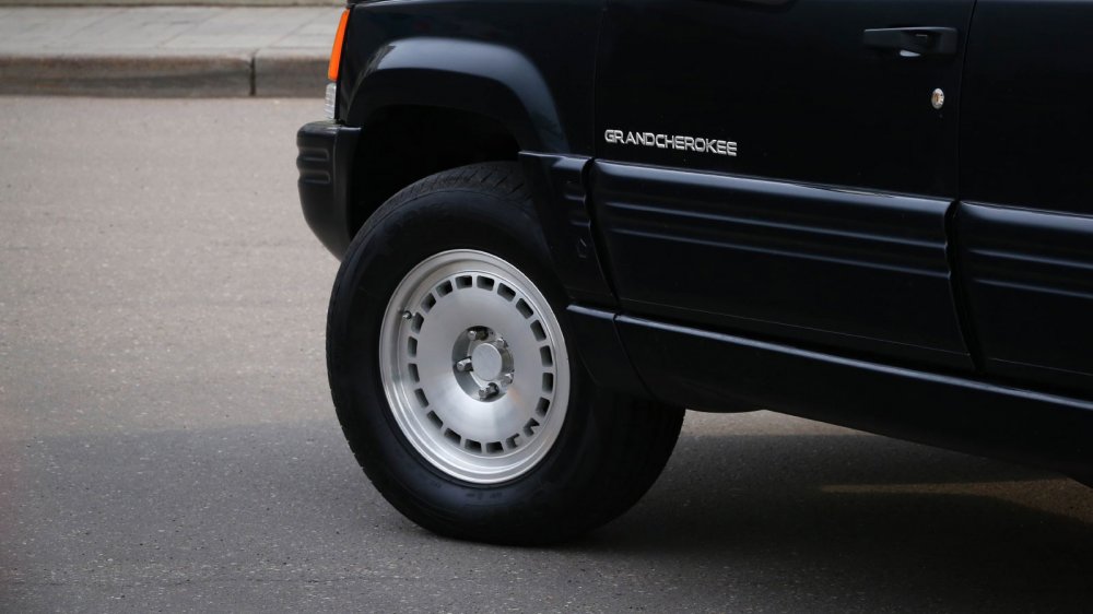 Внешние отличия именно этой, 5,9-литровой версии 1998 года, от ZJ более ранних лет – окрашенная в цвет кузова решетка радиатора, жабры охлаждения на капоте, которые многие по незнанию принимают за накладной бутафорский «колхоз», пороги не прямые, а с небольшой «арочностью», плюс хромированная насадка на выхлоп. Единственное, что здесь неродное — это алюминиевые диски, родные были пятилучевыми.