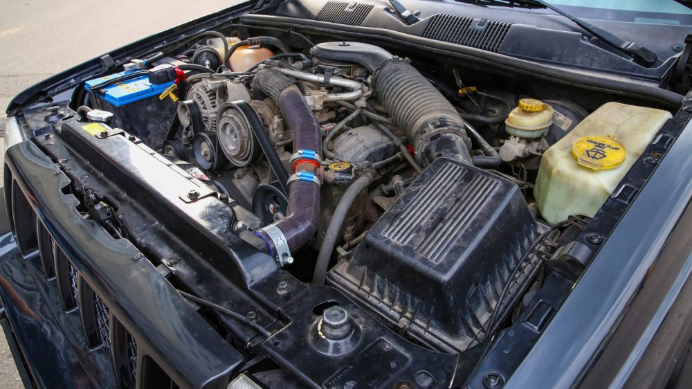 Вторым по значимости после кузовщины, разумеется, является двигатель. Интересно, что этот редкий для Гранд Чероки 5,9-литровый впрысковый мотор сложно не перепутать с куда более распространенным 5,2-литровым. Фактически единственным визуальным отличием 5,9 является электровентилятор (у 5,2 – вискомуфта). Известен этот двигатель в первую очередь по более крупным и тяжелым Dodge Ram и Dodge Durango, но на Гранд Чероки 1998 года он имеет иные нюансы и настройки – если 5,2, как и положено, отлично переваривает 92-й, то 5,9 требует совершенно нетипичный для старых американцев 98-й бензин! Ну или как минимум 95-й из разряда премиальных фирменных сортов, поскольку даже на обычном 95-м начинается детонация — тот самый стук, который десятилетиями ошибочно именуется водителями «звоном пальчиков».