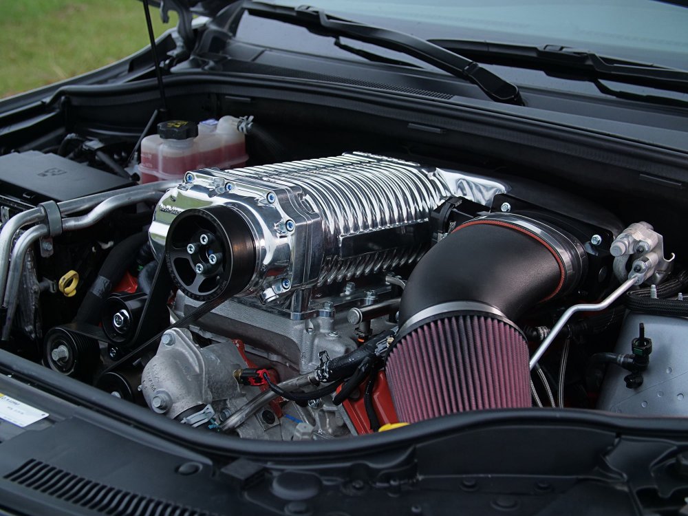 На Jeep Trackhawk HPE1200 можно вполне ездить каждый день на работу, если, конечно, не жалко денег на бензин и ограниченного ресурса двигателя: производитель дает гарантию в один год либо 12 000 миль пробега (19 312 км). В стоке бензиновый 6,2-литровый V8 HEMI выдает 717 л.с., а после «прокачки» – 1217 л.с. Крутящий момент увеличился с 875 до 1356 Нм. Столь огромный скачок в отдаче стал возможен благодаря новой высокопроизводительной «мясорубке» объемом 4,5 л, доработанным головкам блока цилиндров, кованым поршням и шатунам, новой топливной системе, новым системам впуска и выпуска, оригинальной программе управления.
