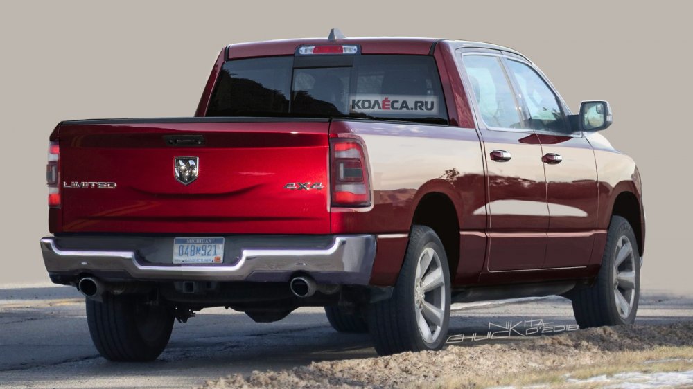 Другая американская новинка, внешность которой мы предугадывали в начале этого года – следующее поколение пикапа Ram 1500. Здесь нам удалось воспроизвести внешний вид почти на сто процентов, за исключением разве что хромированных молдингов на боковинах и вокруг окон, а также накладок на колёсные арки.