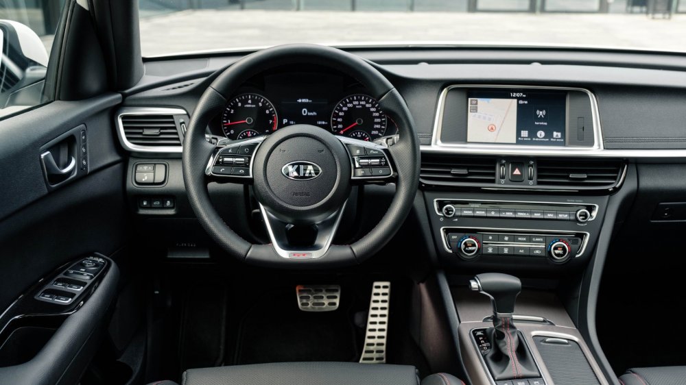 Кроме того, на автомобилях с буквами GT установлено рулевое управление с электродвигателем, размещенным на рулевой рейке (R-MDPS), которое, по идее, должно обеспечить «прозрачную» обратную связь и максимально точные реакции на действия водителя. Тем не менее, по отзывам коллег, поведение Optima GT скорее напоминает не классические спортивные автомобили, а американские «маскл кары», «мускулистые автомобили», быстрые и комфортабельные, с весьма плавным ходом.