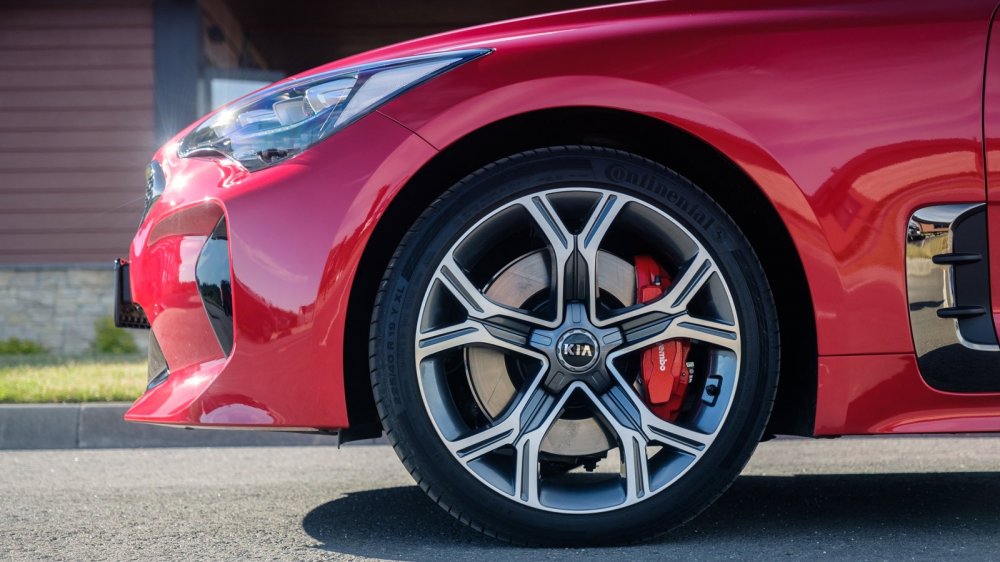 Такой разгон требует и соответствующих тормозов: Stinger GT щеголяет тормозными дисками диаметром 350 мм спереди и 340 сзади и тормозными механизмами Brembo (передними — с четырьмя суппортами, задние — с двумя).