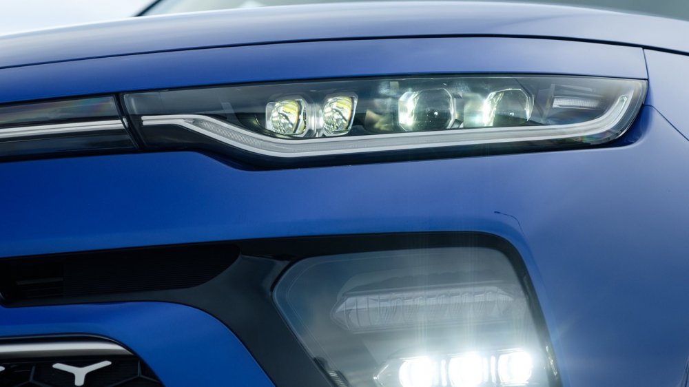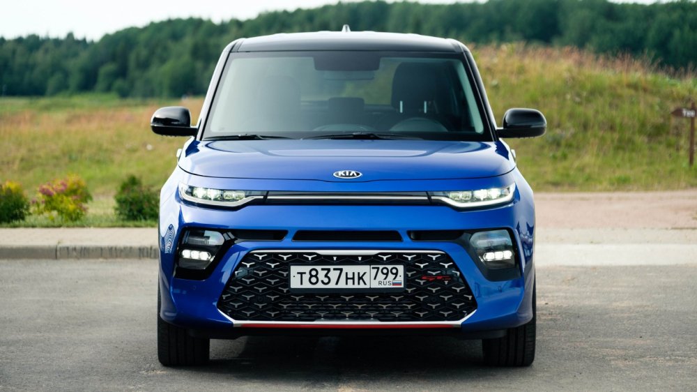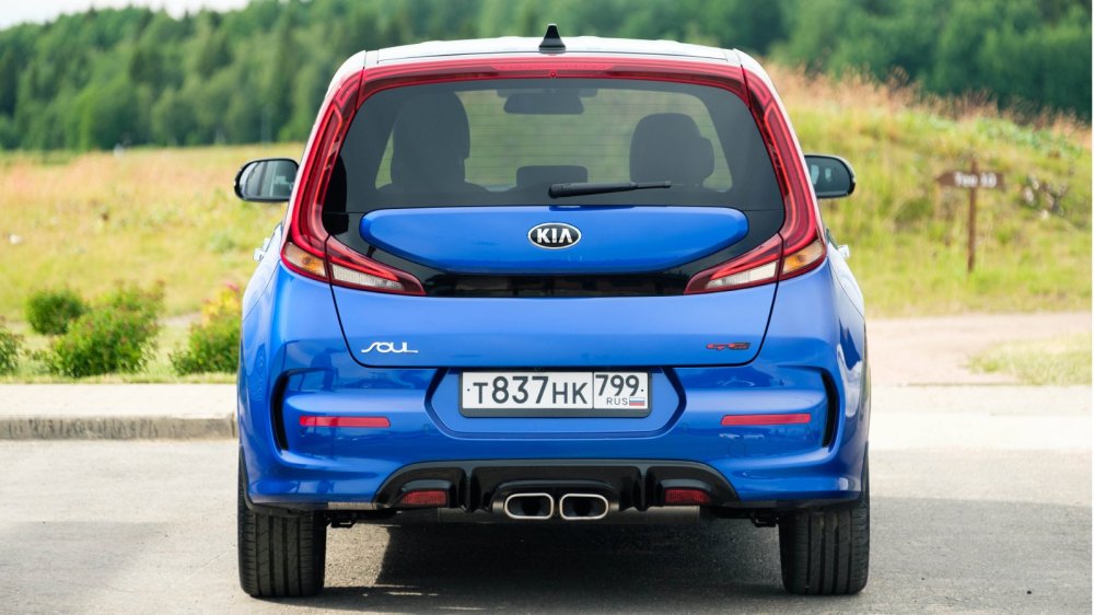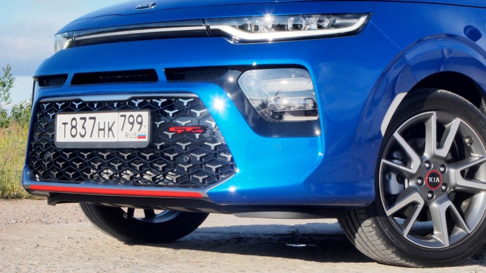 Зато поездка на Soul GT Line быстро смыла это чувство неудовлетворенности. Вот уж задорный автомобильчик! И этот задор чувствуется во всем: в узких фарах, объединенных полоской, проходящей по всей ширине автомобиля, в брутальной пасти нижней решетки радиатора, в черных глянцевых накладках в верхней части задних стоек, в бумерангах задних фонарей, обтекающих заднее стекло в виде своего рода дуги, в сдвоенном наконечнике выхлопной трубы, расположенном по центру кузова… Все это ощущение дерзости и нонконформизма подчеркивают красные акценты: полоски в нижней части бамперов, вдоль порогов и красные колечки на колпачках, закрывающих ступицы колес.