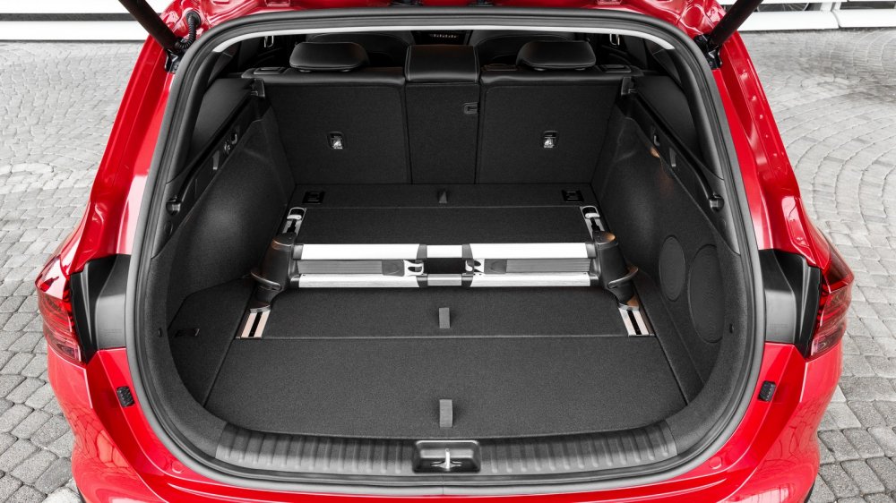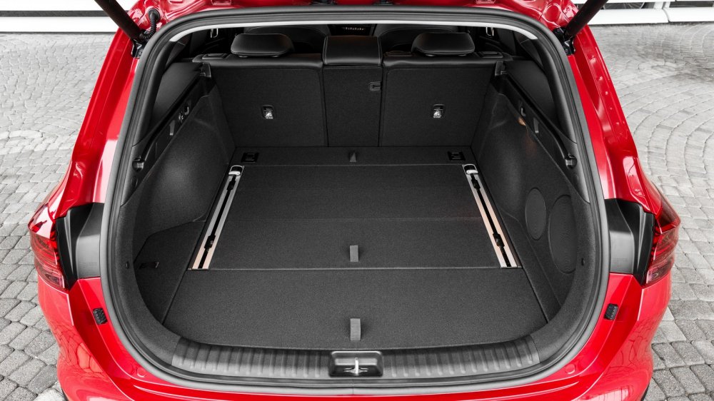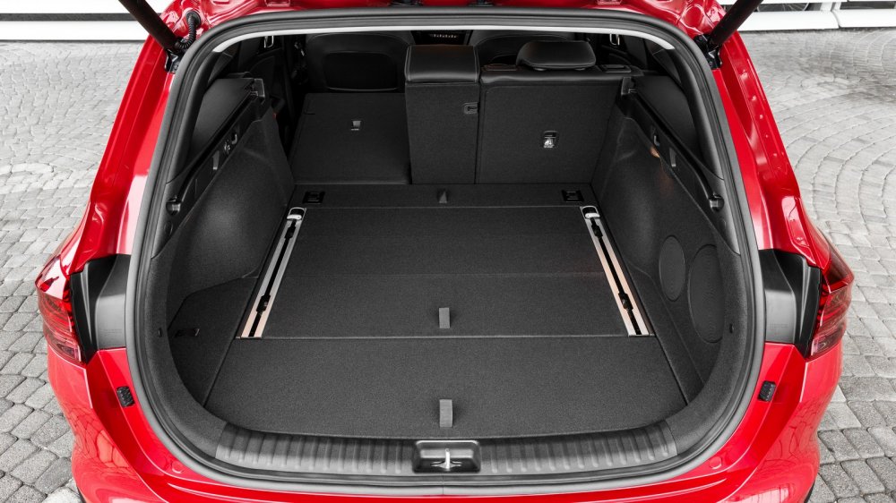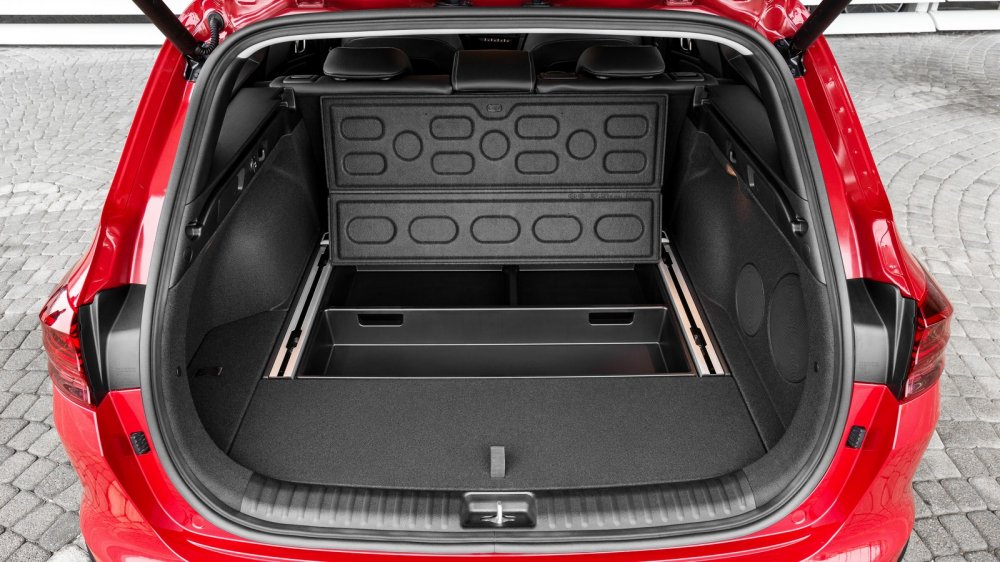 Сложить спинки заднего сиденья можно «в один клик» рычажками, расположенными на боковинах багажного отсека, – в результате образуется ровный пол без ступенек. Однако трёхсекционная спинка с разбивкой 40/20/40 доступна только начиная с комплектации Prestige (в более простых комплектациях секций будет две). Есть в багажнике и третье дно: под пластиковым лотком-органайзером находится ниша докатки – и всё это, заметьте, при многорычажной задней подвеске. Последняя, кстати, у универсала чуть отличается от задней подвески хэтчбека: в неё с расчётом на более частую полную нагрузку установили более жёсткие пружины и амортизаторы, и под эти изменения даже перекалибровали систему стабилизации (а на это уходят месяцы напряжённой полигонной работы). Однако механизма самовыравнивания под нагрузкой в заднем мосту нет – машинам С-класса он не положен, поэтому при полной массе (от 1 800 до 1 880 кг в зависимости от модификации) корма немного проседает и уменьшает исходный 150-миллиметровый дорожный просвет.