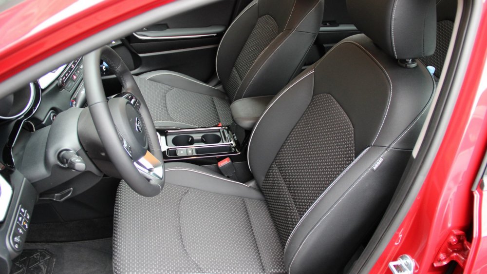 Комплекс помощников водителя Drive Wise, который так понравился моему коллеге Сергею Арбузову летом на дорогах Андалусии, под проливным дождём в Сочи и окрестностях работал так себе. Например, система удержания в полосе не всегда видела утонувшую или просто потускневшую за постолимпийские годы разметку, а в крутых дугах и вовсе отказывалась корректировать курс, позволяя машине отправиться прямиком на встречку или обочину. Лучше было бы, конечно, предложить российскому потребителю самому выбирать компоненты Drive Wise (чтобы, скажем, можно было взять систему автоматического экстренного торможения и систему распознавания усталости водителя, но не брать автопарковщик), но политика фиксированных комплектаций Kia не позволяет этого сделать. В итоге Drive Wise доступен только целиком и только в топовой комплектации Premium+. Также только в ней можно получить электромеханический стояночный тормоз и беспроводную зарядку для смартфона, но и то, и другое, прямо скажем, не предметы первой необходимости.