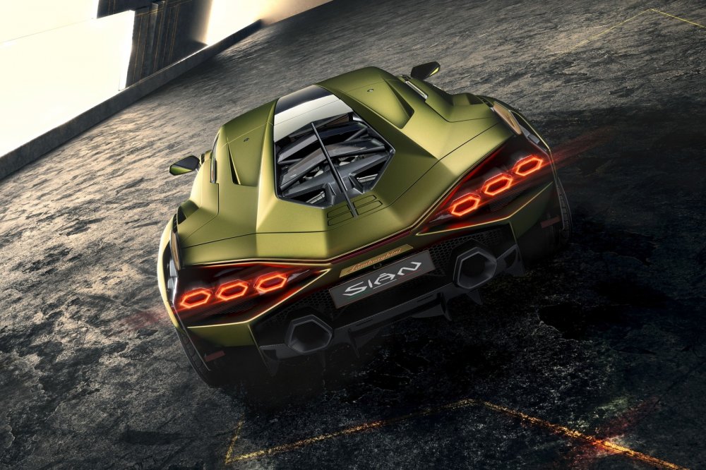 Sian, название которого с болонского диалекта итальянского языка переводится как «вспышка» или «молния», сохранил в своих недрах могучий 6,5-литровый V12 от Авентадора, причём его максимальная мощность была увеличена с 770 до 785 л.с. В 7-ступенчатую автоматическую коробку передач с одним сцеплением внедрён 48-вольтовый 34-сильный электрический мотор, который работает в режиме генератора при торможениях и запасает вырабатываемую энергию в расположенный позади кресел суперконденсатор. Последний отдаёт энергию при ускорениях – первую «сотню» Lamborghini Sian набирает менее чем за 2,8 с. Максимальная скорость – 350 км/ч, но гибридная система эффективна только до 130 км/ч. Полный привод с муфтой Haldex, отбирающей мощность на передние колёса, вероятно, не изменился – просто о нём в пресс-релизе не говорится ни слова.