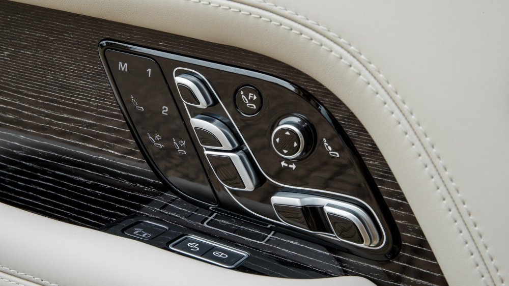 Кнопки регулировочных сервоприводов в связи с “кресельной реформой” переехали на двери, чем породнили Range Rover уже с Мерседесами. Мера вынужденная — кресла банально стали шире, и если блок регулировок оставили бы на торце подушки, то рука бы просто не влезла в узкую щель между сиденьем и дверью. Как бы то ни было, пользоваться всем этим хозяйством стало действительно удобнее. Может, стоит перенять ещё одну штутгартскую штуку — селектор КПП в виде подрулевого переключателя? Я и американцы точно оценим!