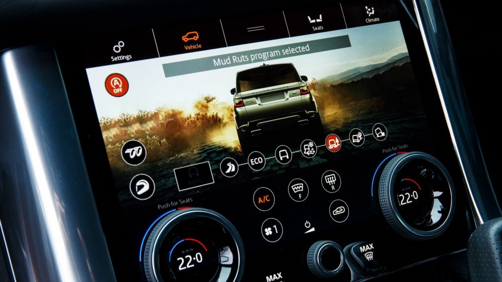 При весе за две тонны он неплохо (давайте будем честными, именно что неплохо, с поправкой на класс больших SUV) рулится благодаря активным стабилизаторам поперечной устойчивости. Несмотря на 22-дюймовые диски, поразительно мягко стелет по не всегда идеальным английским провинциальным дорогам — гораздо мягче, чем куда более "травоядный" Volvo XC90. А ещё вполне "могёт" на бездорожье, ведь тут тоже есть и Terrain Response, и блокировки, и регулируемый дорожный просвет.