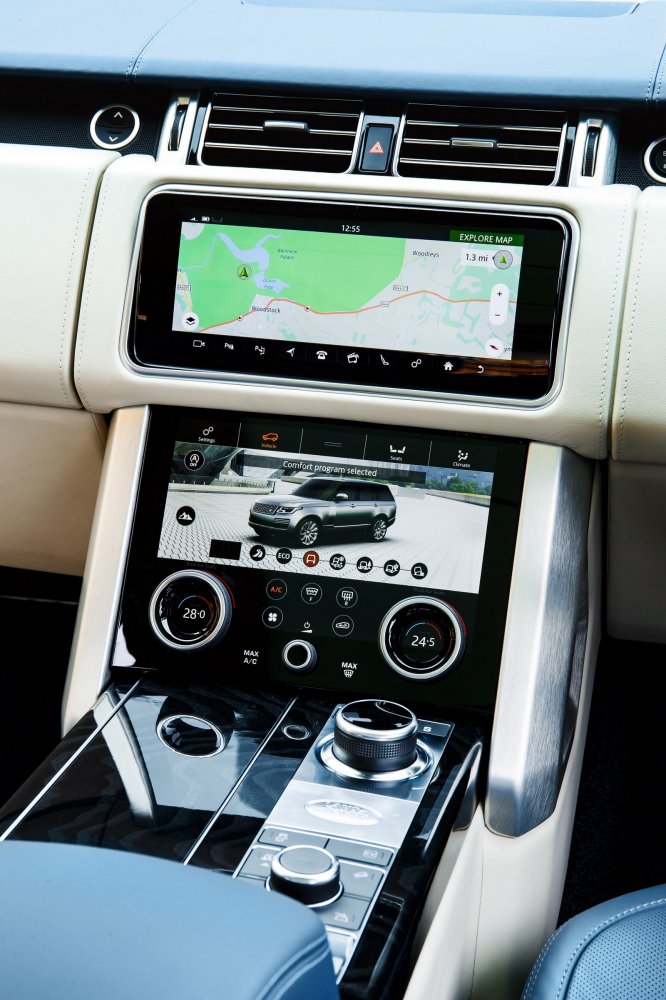 Сильно изменились кресла. Подушки массивнее и длиннее, спинки — шире, набивка — мягче. В отличие от дорестайла, который диктовал собранную и правильную с точки зрения офф-роуда и гонок посадку, обновлённый Рейндж даёт водителю развалиться, как в каком-нибудь Cadillac Escalade, что лично мне, например, импонирует — я люблю “диванные” ощущения в больших автомобилях. Вот он — явный крен в “американизм”, что ничуть не удивительно, ибо США являются одним из основных рынков сбыта для флагмана Jaguar Land Rover. В конце концов, если кому-то не хватает спортивности, для него есть Range Rover Sport — там сиденья по-прежнему “строгие”.
