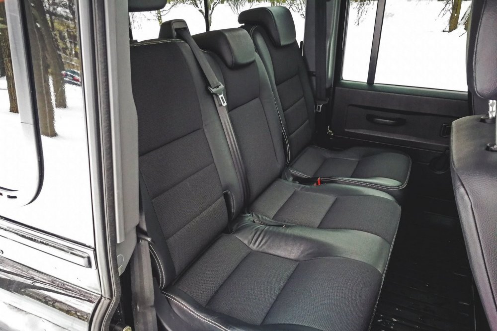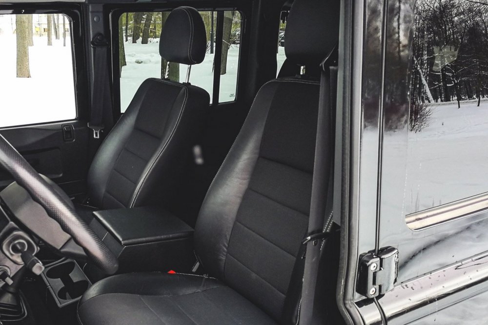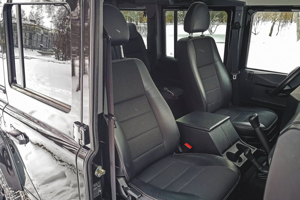Чтобы оценить эту картину, пришлось слегка напрячься — посадка в Defender требует сноровки, иначе шишку вам на голову. Поэтому садишься задом вперед, не забывая про отсутствие ограничителей дверей. Презрение к эргономике возведено практически в культ. Кнопки разбросаны по салону в хаотичном порядке. Как вам включение заднего стеклоочистителя с кнопки на передней панели или корректор фар рядом с подогревом сидений?