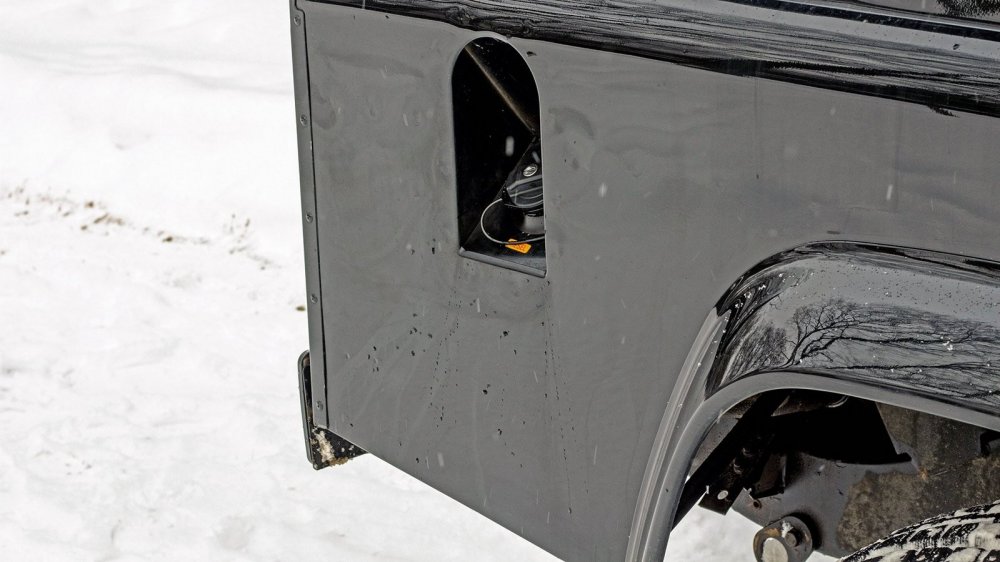 Как и любой британец, Defender богат на внешние детали. Вокруг внедорожника можно часами расхаживать, цокая языком. Он весь покрыт заклепками, абсолютно весь, простенькие фонарики оптики прикручены прямо поверх кузова, а пробка бензобака бесстыдно выставлена на показ. Да и чего ему стесняться, в его-то возрасте.