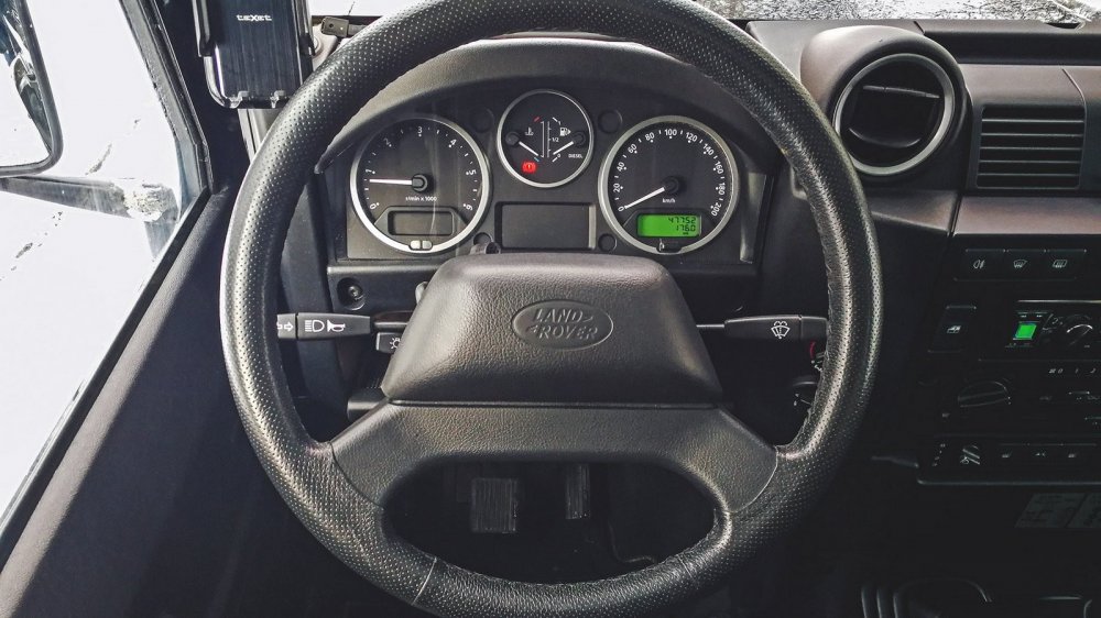 В России Defender продавался на протяжении 13 лет. За это время он успел найти себе 4 452 новых друга. В ходе рестайлинга 2012 года под капотом, рычаг которого с присущим англичанам юмором находится справа, рядом с пассажиром, прописался фордовский 122-сильный дизель объемом 2,2 литра.