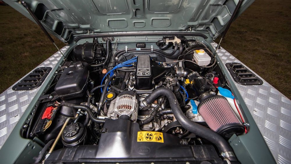 Под капотом Defender установлена четырехлитровая V-образная «восьмерка» Rover, развивающая мощность 175 л.с. Двигатель агрегатируется с пятидиапазонной автоматической коробкой передач.