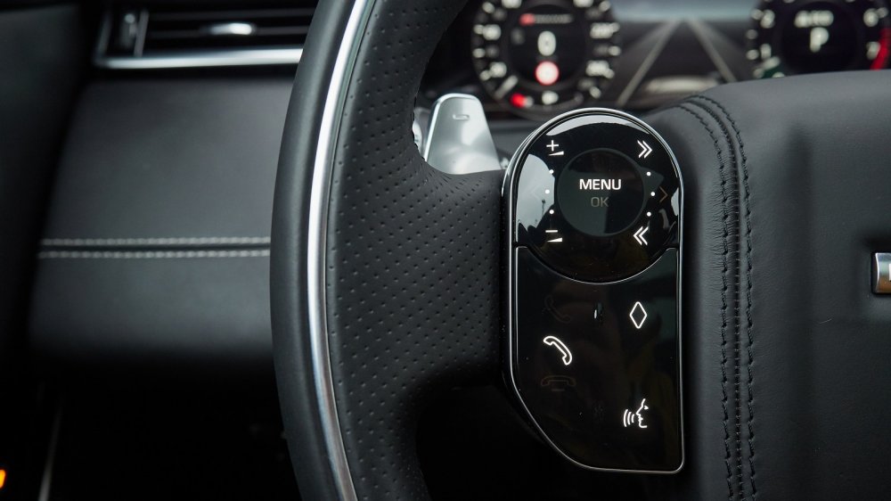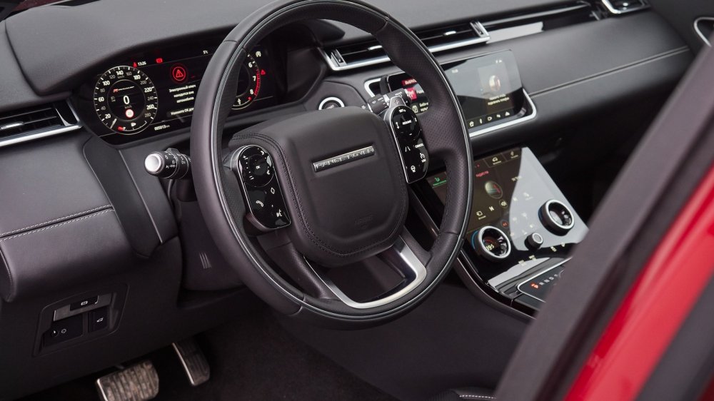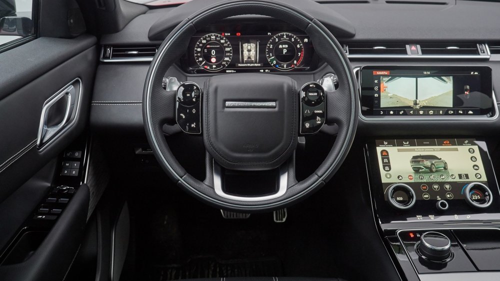 Собственно говоря, от автомобиля, носящего имя Range Rover, ты ожидаешь комфорта и благородной сдержанной роскоши, а поскольку это Velar, который уже не раз назвали самой высокотехнологичной моделью из всего семейства, то это будет роскошь в стиле хай-тек. Ну, что могу сказать: так оно все и есть… От тех образцов, на которых я катался осенью на полигоне, Velar R-Dynamic отличался рулевым колесом спортивного типа с наплывами. Я эти самые наплывы не очень люблю, особенно если ими снабжают руль серьезного внедорожника, но приходится признать, что в данном случае они вполне уместны. Да и вообще, все мои опасения оказались напрасными: металлическая полоска на руле, придающая «баранке» особую элегантность, совершенно не мешает ни хвату, ни скоростному рулению. Эффектные блоки клавиш с емкостным управлением ни разу не сработали при случайных касаниях без моего на то желания.