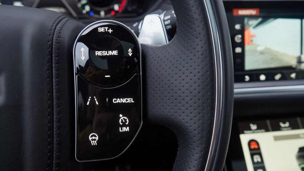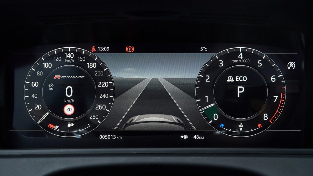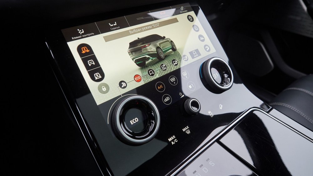 Вообще про четыре дисплея Velar (проекционный, виртуальная панель приборов и два сенсорных) написано уже много. Впервые попав за руль этого автомобиля, ты действительно начинаешь ощущать себя пилотом звездного крейсера «Энтерпрайз» из «Стартрека». Но, честно говоря, я так и не решил для себя, как относиться к этой идеологии организации органов управления. Мне все-таки кажется, что более правильным был бы некий компромисс, комбинация «физических» кнопок и иконок на тачскрине. Вообще концепция «стеклянной кабины» пришла из авиации. Так вот, посмотрите на фотографии кабин современных лайнеров или военных машин. Вы увидите несколько экранов, заменяющих россыпь аналоговых циферблатов самолетов предыдущих поколений, и… окружающие их крупные кнопки, отвечающие за самые главные функции. Во всяком случае, мне больше по душе была бы такая организация, в которой, например, за ограничитель скорости и круиз-контроль отвечали бы отдельные клавиши, а не последовательное нажатие на одну и ту же. И такие электронные помощники водителя как система контроля слепых зон и система удержания полосы тоже заслуживают отдельных кнопок, причем собранных в логичный блок, а не только пунктов в многоуровневом меню.