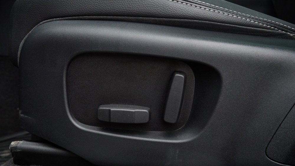 Ну, а дальше настало время «подгонять костюмчик по фигуре», и вот тут я столкнулся с неожиданными проблемами. Совершенно неожиданно для меня автомобиль ценой около 6,2 миллиона рублей оказался обделен некоторыми опциями. Например, положение рулевой колонки (которая, естественно, регулируется и по углу, и по вылету) регулируется вручную, без сервоприводов. Неожиданным оказался и способ блокировки изменений: ты по привычке ищешь внизу откидывающийся рычаг, а колонка стопорится вращающейся ручкой на правой стороне, там, где у многих марок располагается замок зажигания. Не могу сказать, что это неудобно, просто как-то непривычно…