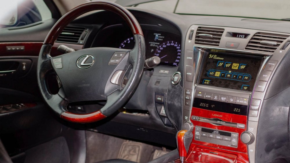 В салоне явственно чувствуется связь поколений. Классический дизайн интерьера с центральным дисплеем, обрамленным серебристыми кнопками и неизменными тойотовскими электронными часиками — всё это было и в прошлом LS. Но стиль стал утончённее. Дизайн передней панели теперь перекликается с рисунком решетки радиатора. Чуть меньше дерева, ещё лучше кожа, а качество сборки отменное. Салон этого конкретного авто просит легкого детейлинга, но молчит как партизан – скрипа пластика в движении не дождетесь.