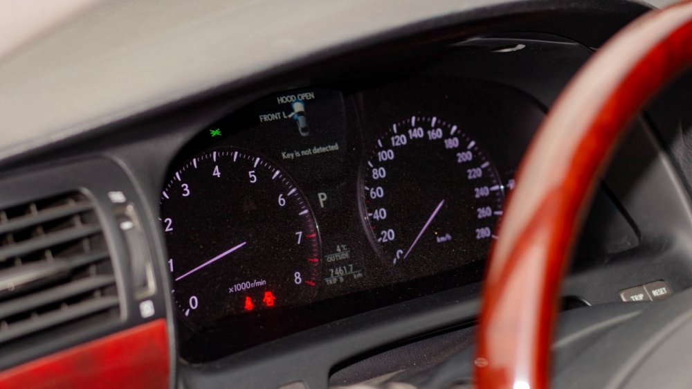 «Еще кое-что» у этого конкретного экземпляра – это то, что двигатель успел пройти капитальный ремонт, и фактический пробег мотора на момент покупки составлял примерно 45 000 километров. Предыдущему владельцу автомобиль достался с разобранным двигателем, лежащим в багажнике. К сожалению, после сборки родной мотор работал неустойчиво. Ошибки по электронике, в том числе по форсункам, победить удалось, но выяснить природу металлического звука, возникающего на скорости с 10 до 50 км/ч, так и не получилось. В итоге двигатель снова был разобран и прошел капитальный ремонт-апгрейд с использованием деталей от других V8 Lexus. Блок взят от пятилитрового 2UR-GSE с битого Lexus IS-F из Японии, поршневая и ГБЦ — от 2UR-FSE с гибридного LS 600h, навесное оборудование осталось своим. Расчетная мощность — 420 л.с.