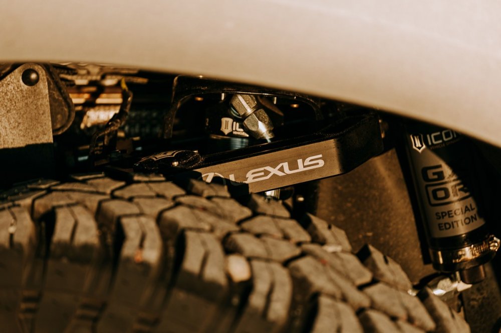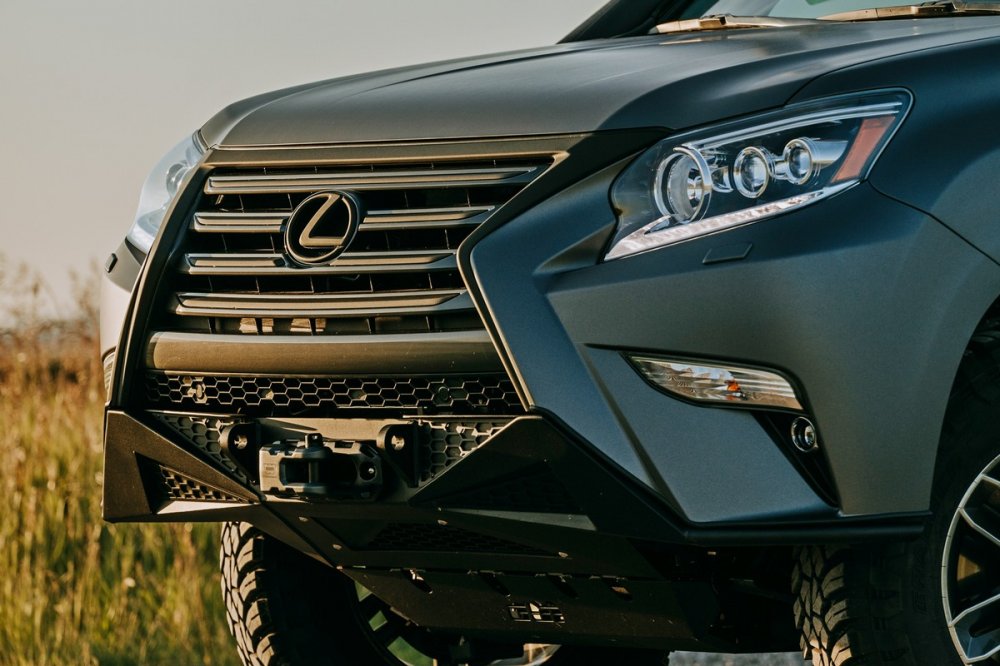 Стоковый Lexus GX ровно месяц назад пережил очередной рестайлинг и для него пока предлагается только лайтовый пакет Off-Road: в него входят дополнительная защита топливного бака, камеры кругового обзора, системы Multi-Terrain Select и Crawl Control.
