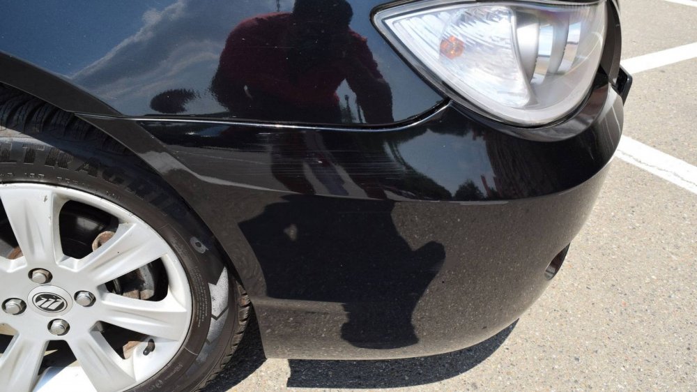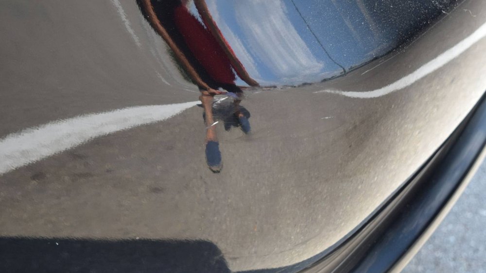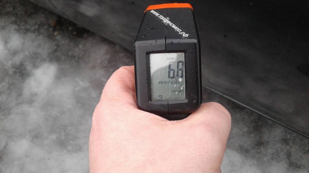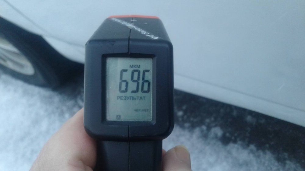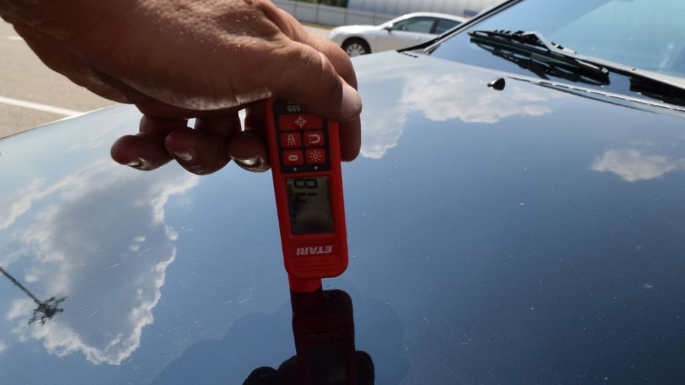 Толщиномер везде показывал положенные ему цифры, но на заднем левом крыле он всё-таки нашёл немного шпатлёвки. Судя по тому, что её полоска оказалась узкой, здесь была просто глубокая царапина. Ничего страшного в этом нет.