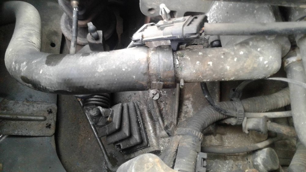 Во-первых, патрубок, подходящий к термостату, немного “опух”. Не сильно, но заметно. Причин может быть несколько, и самая неприятная — негерметичность прокладки ГБЦ. Ради интереса посмотрел её цену — от 380 рублей за оригинал. Мягко выражаясь, недорого. Впрочем, причин опухоли патрубка может быть несколько, и что именно тут придётся менять, сходу сказать сложно. Хорошо, что в масле нет эмульсии — может, получится обойтись малой кровью.