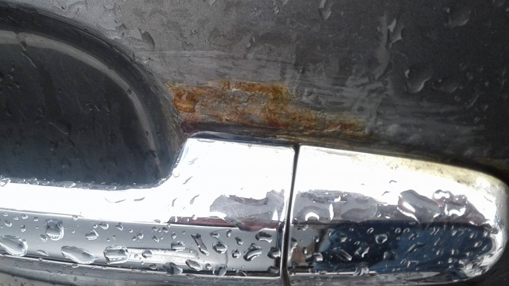 Причин низкой коррозионной стойкости несколько. В первую очередь — качество металла, во вторую — не очень хорошая покраска. Да и слой ЛКП тут смехотворный. Вот на этой машине в родной краске он в среднем составляет 60-70 мкм. Местами чуть больше, местами чуть меньше.