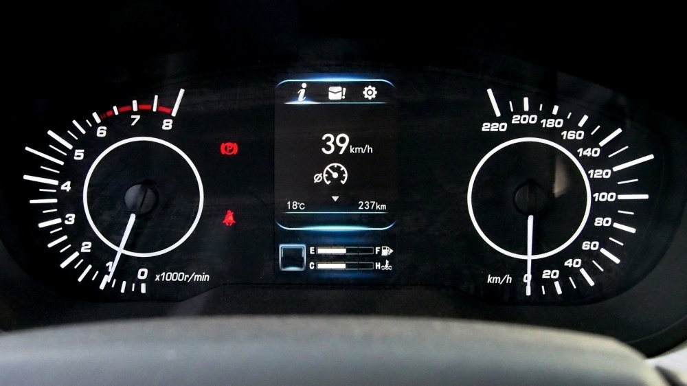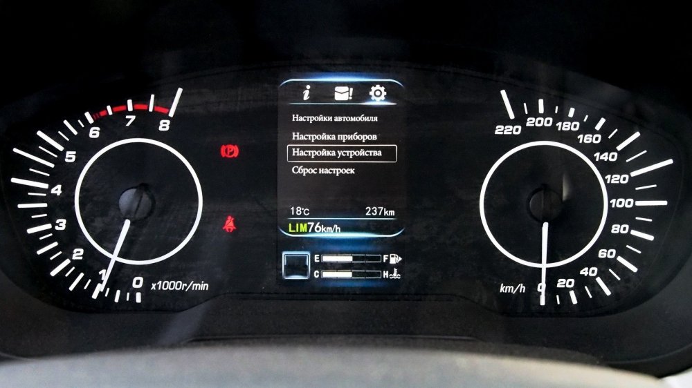 Особенно актуально это в силу того, что контролировать скорость по спидометру получается не очень хорошо. Мало того, что оцифровка шкалы мелкая и довольно плохо читается, так еще и стрелка движется в направлении, противоположном часовой! Бросаешь взгляд на прибор, и первая мысль – мама дорогая, это что, мы 120 валим? Потом присмотришься – ан нет, на два больших деления ниже сотни – значит, 80… А вот дисплей бортового компьютера – не тот, что я видел в Китае. Он стал существенно лучше и информативней.