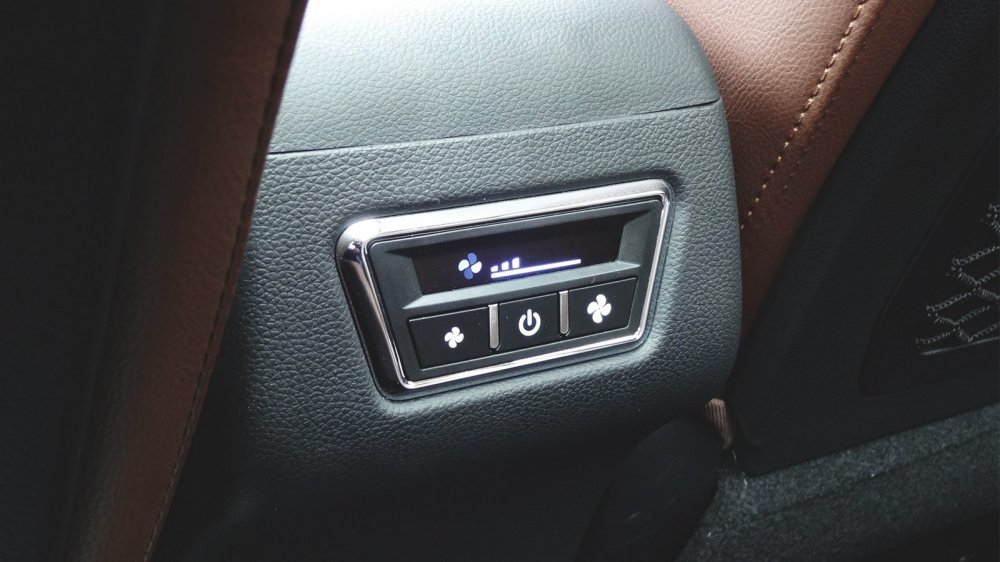 Салон богат на отделку и опции. Материалы нескольких цветов, вставки под рояльный лак и дерево, хромированные окантовки — все по правилам бизнес-класса. Заносим в актив качественную кожаную обивку благородного цвета, сиденье водителя с массажем и вентиляцией, огромную 1,1-метровую панорамную крышу, камеры кругового обзора, понятный 9-дюймовый сенсорный дисплей медиацентра с навигацией, адаптивный круиз-контроль и для полноты картины – ассистентов слежения за полосой движения и трогания на подъеме. Разумеется, есть электроприводы и подогревы сидений и зеркал и отдельный блок управления климатом для задних пассажиров.