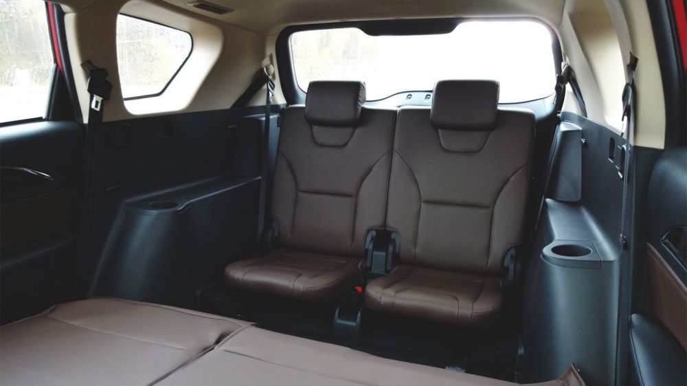 Комфортное водительское сиденье с шестипозиционным электроприводом позволяет найти необходимое положение в пространстве, причем запас по высоте просто огромен, и даже человек небольшого роста рискует подпереть головой потолок, дождавшись, пока затихнет звук сервомоторчика. Пассажиры второго ряда также не почувствуют себя в тесноте благодаря подвижности сиденья. Спинка регулируется по наклону в фиксированных положениях. Можно изменить положение кресел и по длине, причем после сдвигания их до упора вперед появляется проход на третий ряд сидений. Двухместная галерка предсказуемо стеснена и рассчитана на детей, хотя пространства над головой хватит и рослым седокам. В убранном виде дополнительный ряд образует ровную площадку, а если сложить спинки второго ряда, появляется объемный багажный отсек, который легко примет даже двухметровый холодильник.