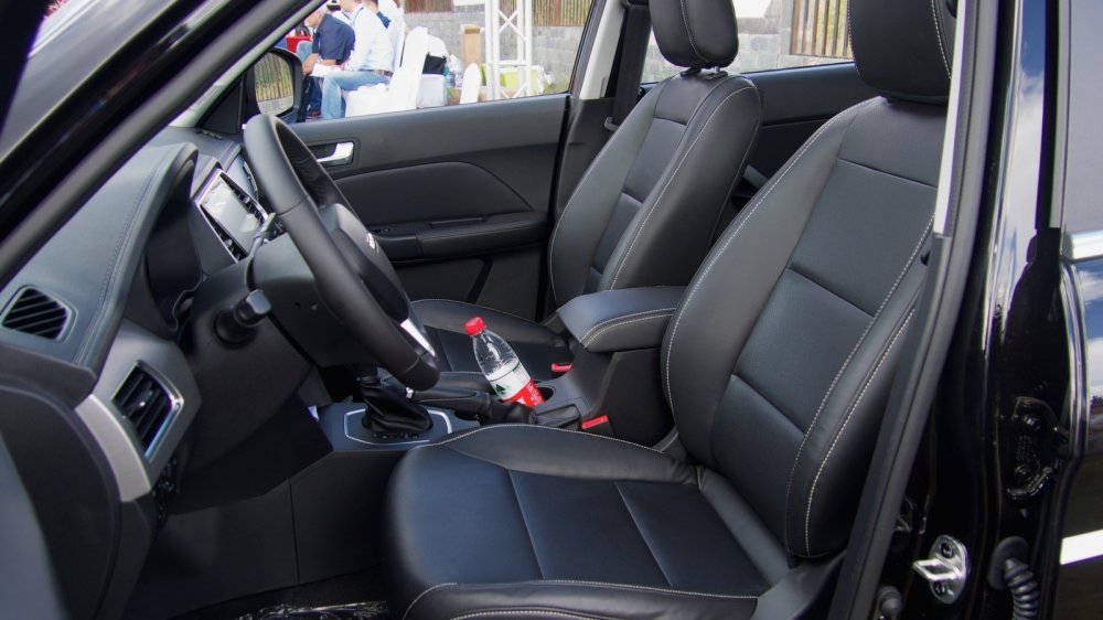 Но вот настает моя очередь сесть за руль… Организаторы приготовили для теста короткую грунтовую трассу протяженностью несколько сотен метров, не более… Ну и что можно успеть понять на такой короткой дистанции? Ну, что-то все-таки можно… Устраиваюсь в кресле и понимаю, что эргономика водительского сидения у Х70 получилась достаточно удачной. Может быть, при длительной эксплуатации и вылезут какие-то косяки, но пока мне все нравится: и руль очень цепкий, с удобным сечением, и профиль сидения нареканий не вызывает, и правая нога не колотится о жесткий край центральной консоли. Нажимаю на кнопку Start (ну да, в этом плане у автомобиля все по-взрослому), и под капотом оживает двухлитровый 139-сильный двигатель. Поехали!