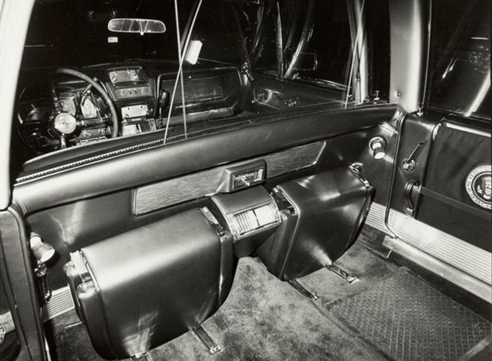 На машине Кеннеди имелись три вида плоских прозрачных плексигласовых панелей для установки над различными частями салона и четыре Г-образных пластиковых и стальных козырька над задним сиденьем, которые скрывали президента от погодных невзгод и своих противников. Они позволяли за несколько минут превратить автомобиль из традиционного фаэтона во вполне солидный лимузин. Никаких бронированных или пуленепробиваемых элементов на нем не было, не считая стандартного безопасного двухслойного лобового стекла.