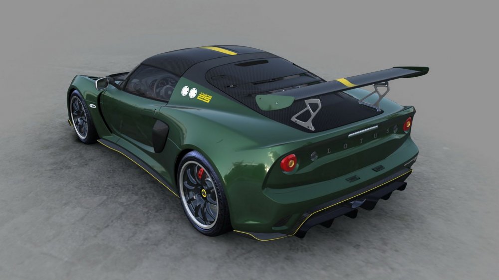 Что же касается Exige Cup 430 Type 25, то он получил зелёно-жёлтую ливрею в стиле легендарного гоночного болида, хотя также его можно заказать и в белом цвете. Также Exige получил совершенно новый обвес, состоящий из карбоновых юбок, сплиттера и диффузора. Также модель получила легкосплавное заднее антикрыло, которое очень напоминает своей формой крылья болидов Формулы-1 конца 60-х годов. Вся аэродинамика Exige Cup 430 Type 25 действительно работает: по данным Lotus, автомобиль может генерировать 220 килограмм прижимной силы.