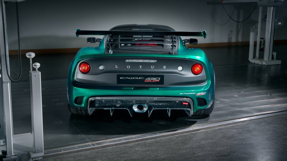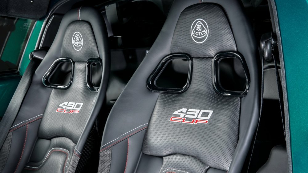 Для Exige Cup 430 разработали аэродинамический обвес кузова, включающий новый передний сплиттер и крупное антикрыло, генерирующее 220 кг максимальной прижимной силы. Автомобиль также получил карбоновый кузов и алюминиевые колеса, обутые в резину Michelin Pilot Sport Cup 2, благодаря чему инженерам удалось добиться массы всего в 1 056 кг.
