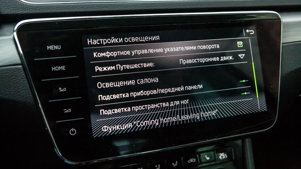 Свою долю в сумму впечатлений вкладывают точный, но, на мой вкус, сильно облегчённый руль, цепкие тормоза довольно высокой чувствительности и подвеска. На этом пункте остановлюсь подробнее. При активном маневрировании упругие элементы предотвращают сильные крены кузова, что вместе с лёгким рулём поначалу вводит водителя, особенно неопытного, в заблуждение: возникает иллюзия, что Superb – это маленький высокоманёвренный автомобиль, который с лёгкостью перестраивается, берёт крутые повороты, мгновенно разгоняется и тормозит. Нет, это не совсем так, хотя тот же мощный двигатель, который даже в режиме Comfort даёт превосходный старт, а на трассе показывает уверенные возможности по набору динамики при движении из стационарных режимов, тоже играет на эту иллюзию.