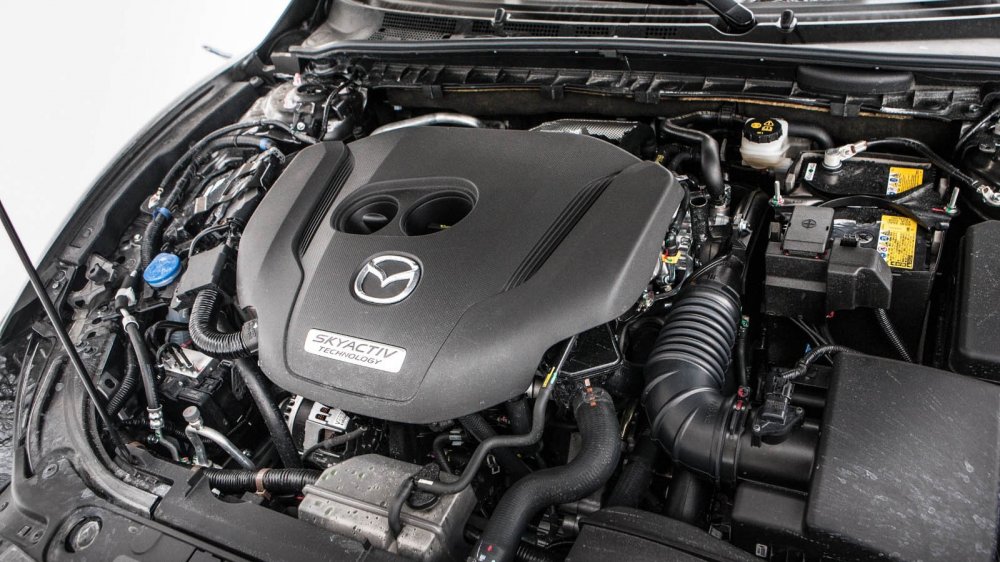Мотор Skyactiv-2.5T имеет уже «нормальную» степень сжатия в 10,5, а не в 13,0, как все «атмосферники» Skyactiv, однако многое в характере у него – от его ближайшего безнаддувного родственника в 2,5 литра. Может быть оттого, что эти моторы практически унифицированы по конструкции? Общая у них даже «геометрия», а именно диаметр цилиндра (89,0 мм), ход поршня (100 мм) и даже рабочий объём – 2 488 см3.