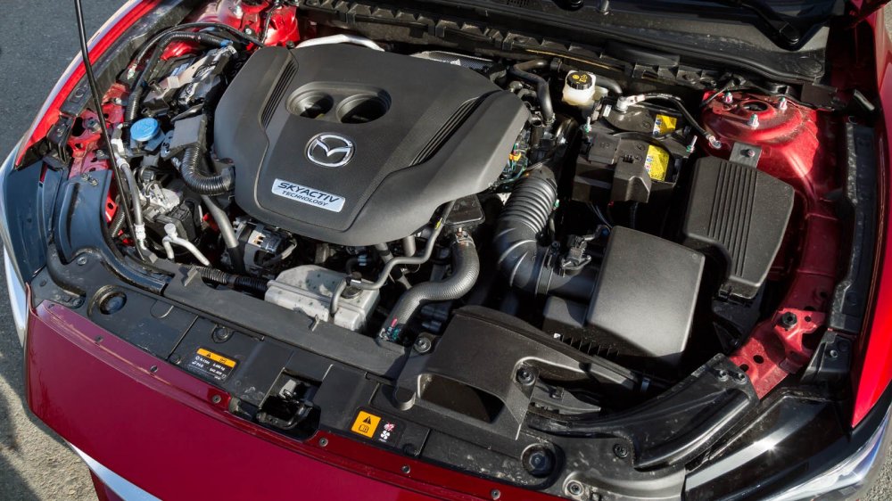 Новый 2,5-литровый турбодвигатель (серии PY), который дебютировал на СХ-9, вместе с рестайлингом «шестёрки» обрёл место под капотом флагманского седана. Он придаёт свои особенности машине не только по части динамики, но и по части шума. Как и в случае с эргономикой, их лучше иллюстрировать в сравнении с технически близким конкурентом, однако кое о чём мы упомянем. Во-первых, при интенсивном разгоне турбированный агрегат шумит сильнее, чем «атмосферник» того же объёма; во-вторых, разгон его не так чтобы очень резв, отчасти, видимо, потому, что коленвал раскручивается долгонько. В-третьих, по части высокотехнологичности агрегат не так уж и крут. Скажем, инженеры обошлись однопоточной турбиной, обойдя вниманием нашедшие широкое распространение конструкции twin-scroll (по крайней мере, так нас уверил в этом Мицуру Вакийе). В-четвёртых, мотор очень дорог: за версию с ним просят 2 244 000.