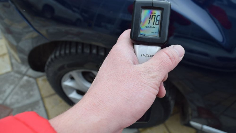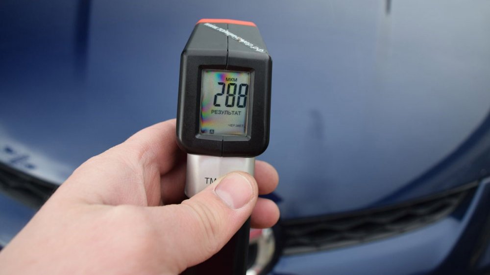 Начнём с кузова. Толщиномер нашёл только одно место, где есть два слоя краски — около горловины бензобака. Скорее всего, там испортили ЛКП заправочным пистолетом. Это не страшно, да и шпатлёвки нет. Вроде, не так уж плохо для 11-летней машины. Но нет. Смотрим на переднюю часть автомобиля.