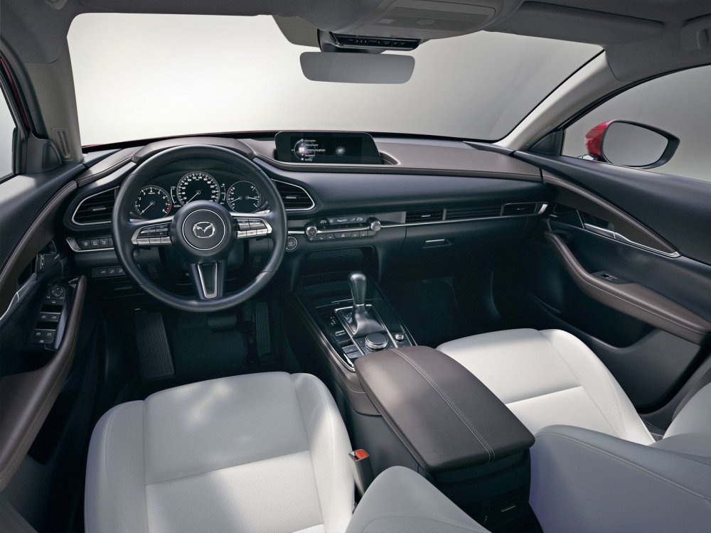 В общем, встречаем CX-30 – компактный кроссовер с колёсной базой 2655 мм (на 65 мм меньше, чем у новой Mazda 3), длиной 4395 мм, шириной 1795 мм и высотой 1540 мм. От «трёшки» ему досталась новая платформа с задней полузависимой подвеской, система полного привода i-Activ AWD, вся ездовая электроника и инновационный 2,0-литровый бензиновый двигатель Skyactiv-Х, у которого воспламенение частично происходит от сжатия, что позволяет достичь экономичности, как у дизеля. Вдобавок этот двигатель, а также 2,0-литровый бензиновый агрегат Skyactiv-G прошлого поколения будут снабжены гибридной надстройкой M Hybrid, которая даёт дополнительную экономию топлива и дополнительную мощность при разгонах. Кроме того CX-30 будет доступен европейцам с 1,8-литровым турбодизелем Skyactiv-D. Коробки передач – 6-ступенчатая МКП либо 6-ступенчатый гидромеханический автомат. Более подробные технические характеристики будут объявлены позднее.