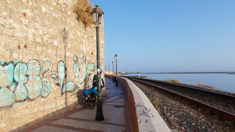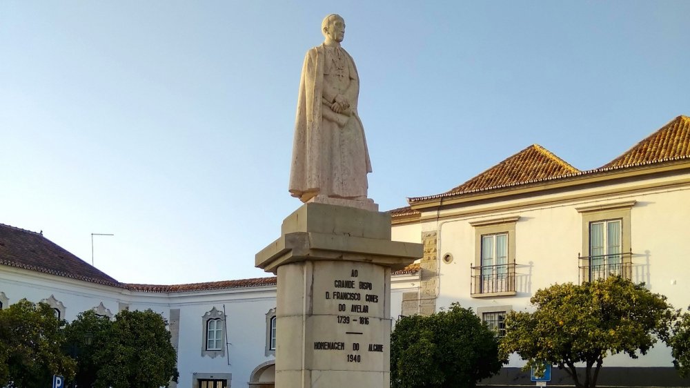 Рядом — епископский дворец, построенный по приказу епископа Афонсу Каштелу-Бранку в 1580-х годах, когда престол епископата был переведён в Фару из Силвиша. Есть тянущиеся вдоль моря старинные крепостные стены… Очень старые, правда, многократно перестроенные. Первая земляная крепость на этом месте была построена еще до завоевания Пиренеев римлянами, потом, в IX веке, ее реконструировали арабы, в ходе Реконкисты стены перестроили еще раз и превратили в замок, а на рубеже XVI и XVII веков, в ходе Реставрационных войн, стены приспособили к защите от артиллерии. Но потом крепость окончательно утратила оборонное значение, в ней размещались то казармы артиллерийского полка, то пивзавод, а вот теперь — парк отдыха.