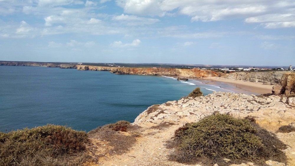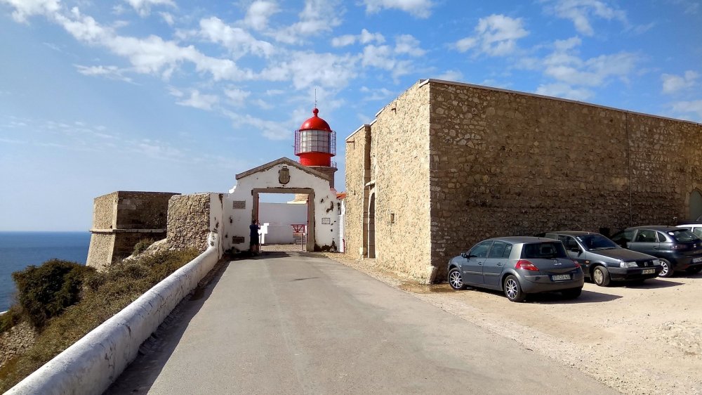 Но музей, посвященный принцу Энрике и великим географическим открытиям, находится не в Сагреше, а в нескольких километрах, на маяке мыса Сан-Винсенте. Место популярное, раскрученное… и очень красивое, так что парковаться приходится за пару сотен метров до маяка. Зато потом идешь через шеренгу прилавков, заполненных симпатичными сувенирами с «морской» тематикой.